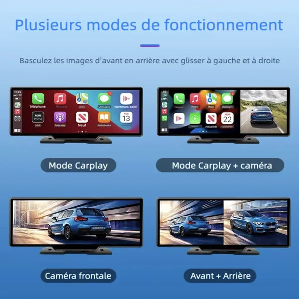 Offrez-vous le meilleur de la technologie embarquée avec cette écran intelligent nouvelle génération qui combine dashcam ultra haute définition et connectivité CarPlay/Android Auto. Ce modèle 2-en-1 transforme votre rétroviseur en un centre de commande pour une conduite véritable plus sûre, plus intuitive et parfaitement connectée à votre smartphone.