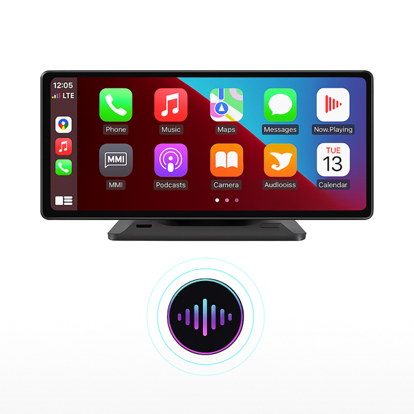 Grâce à sa commande vocale intelligente (en anglais), vous pouvez afficher la caméra avant, arrière ou l'écran entier en parlant simplement. Plus besoin de manipuler l'appareil en conduisant : tout se fait à la voix pour une sécurité renforcée. L'écran tactile IPS de 10,26 pouces avec une résolution de 1600x600 offre un affichage clair, fluide et réactif, même en plein soleil. Plusieurs modes d'affichage sont disponibles, allant du CarPlay plein écran à l'affichage partagé avec la caméra de recul.